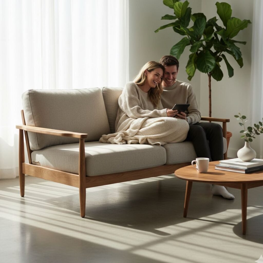 Comodidad y estilo para tu sala de estar. Tapizado en tela de alta calidad con estructura de madera.
